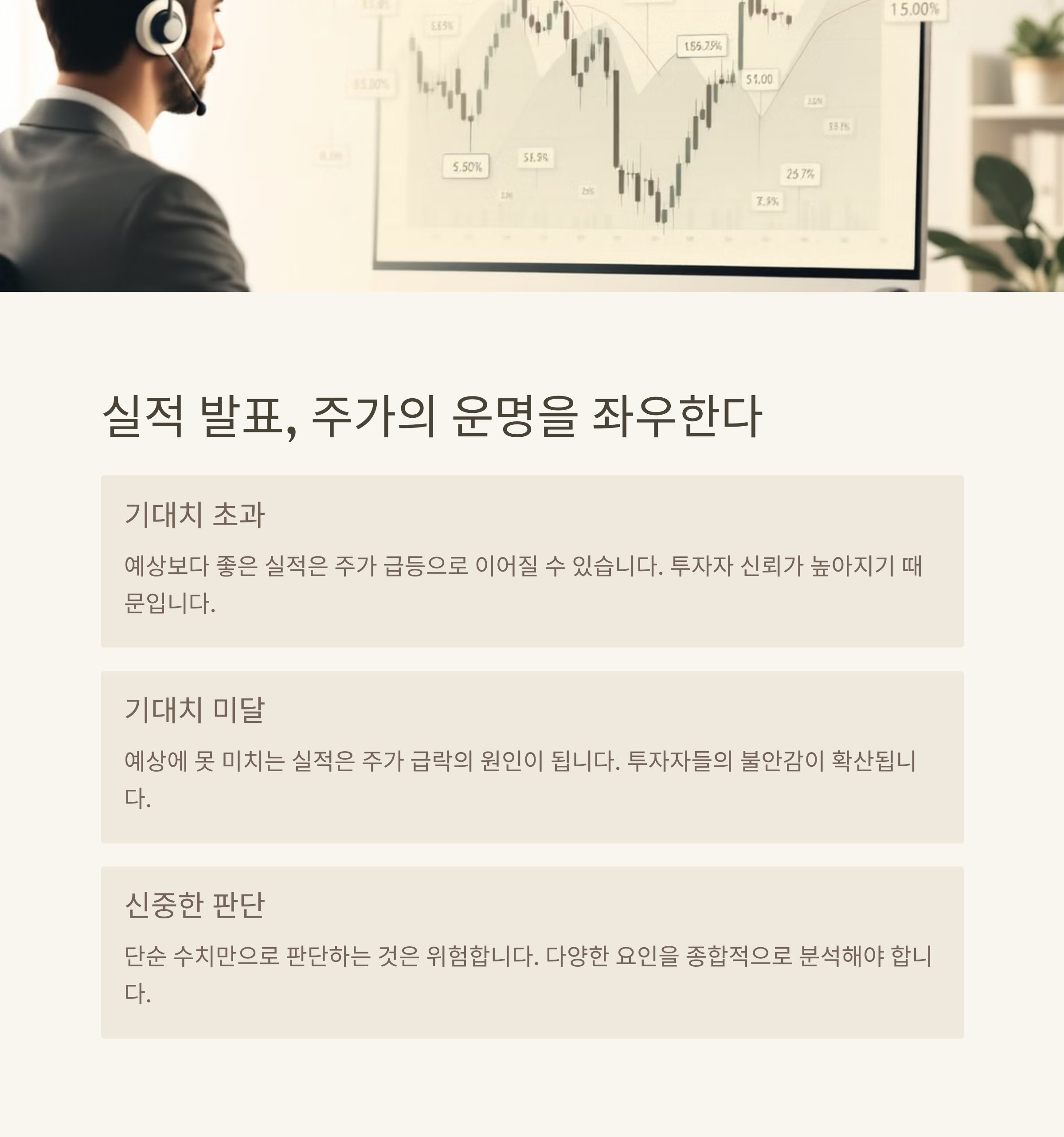실적 발표가 주가에 미치는 영향은 여러 가지 요소에 의해 결정됩니다.